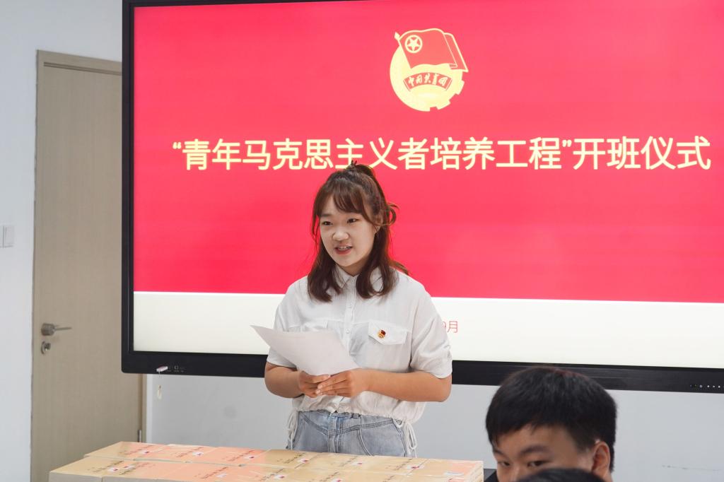 会上,周浛楗向与会人员宣读第一期“青马班”结业学员名单和优秀学员名单,并由谭力铭为优秀学员颁发荣誉证书。优秀学员代表许文诺分享自己过去一年里的学习成果,鼓励全体学员将马列主义的学习融入日常生活中,将个人价值与社会价值相统一,努力成为祖国强盛的后备军。