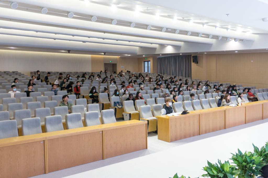以相关生物知识为背景,熊家军向在场同学详细介绍了宠物犬的基础美容过程。他系统地讲解了犬的被毛梳理与开结、犬被毛的清洗与烘干、犬眼睛清洗与耳道清洁、犬趾甲的修剪、犬牙齿的清洁、犬脚底毛和腹底毛的修剪以及犬肛门的清洁等七方面宠物美容的方法与注意事项。其中,他提到毛结形成的本质原因及解决方案,“毛磷片交错打开是毛结形成的首要因素,因此在选取开结工具时要从宠物毛的长短、卷曲度等方面全方位考虑后再作出决定。”同时,熊家军细心地播放了犬清洁的配套教程,希望同学们能够更直观地了解并学习宠物美容。