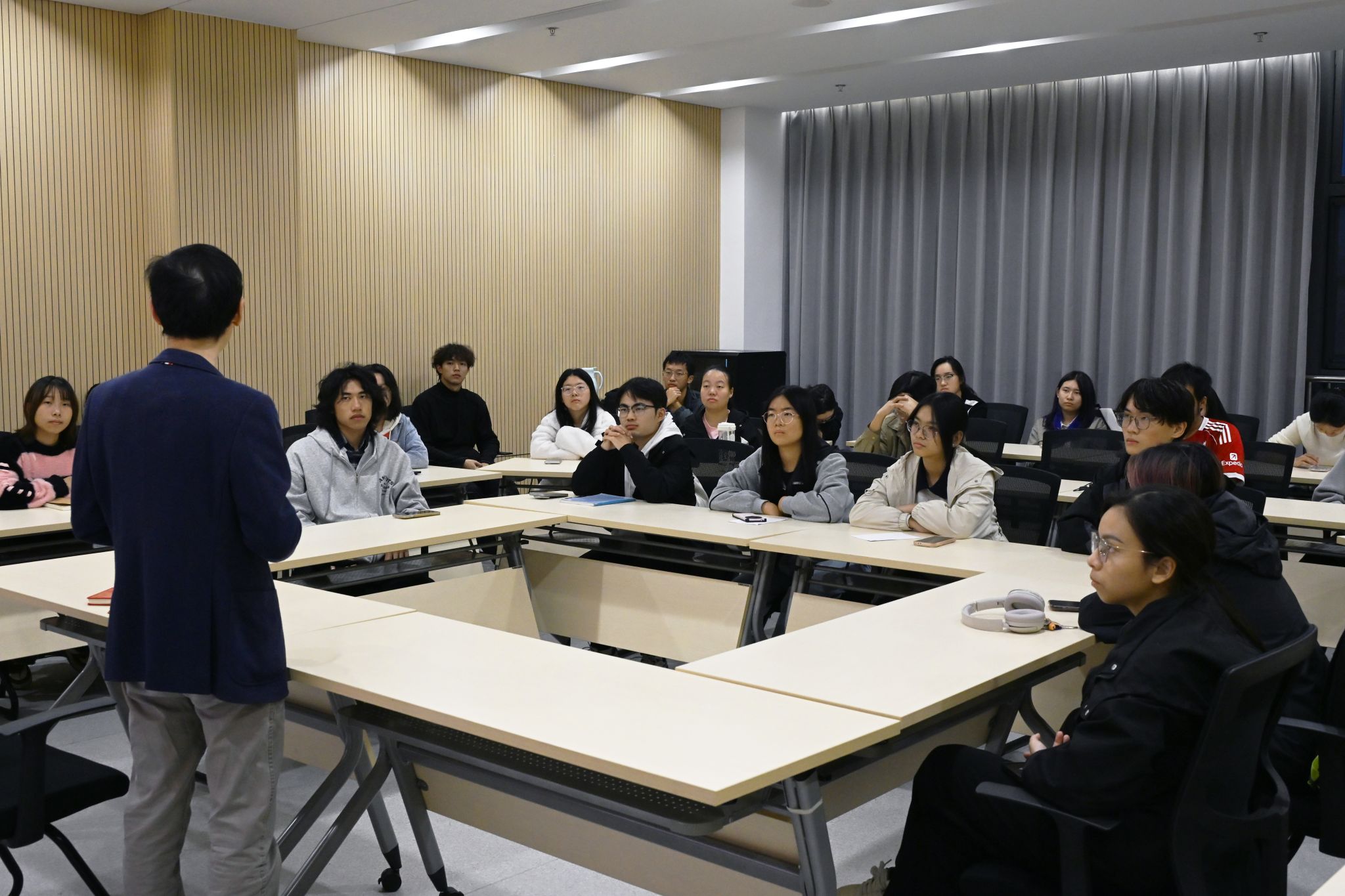 (通讯员:白晓星 摄影:秦钧昊)11月7日下午,“牧医三人行|周四有约”活动顺利在四综B202举行。学院副院长申邦就个人学习经历、科研实践、专业学习等问题进行分享,学生会轮值主席倪茁斌主持本次活动。