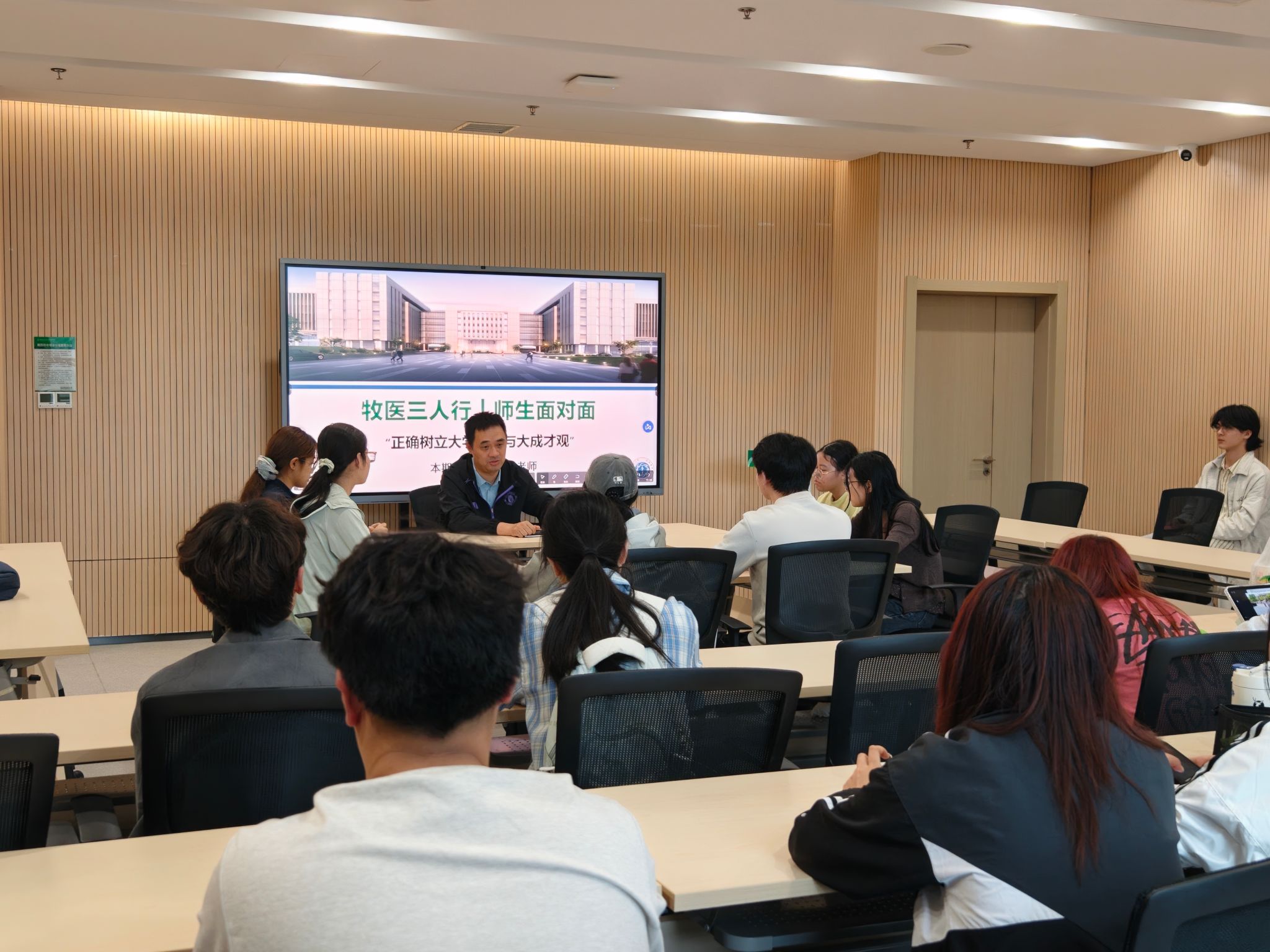 在互动环节,杨冬凯就专业分流、学业规划等问题逐一解答,建议学生结合个人兴趣与行业人才需求做出选择,尽早确立阶段性目标,在课程学习、科研训练、实习实践之间找到平衡。活动最后,主持人王晨对杨冬凯书记的分享表示感谢,本次“牧医三人行”活动在掌声中落幕。