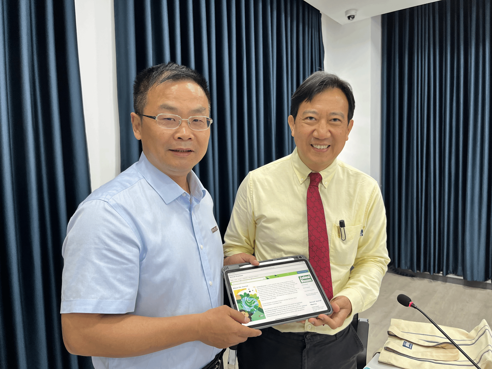 李家奎向清迈大学专家推介《Animal Diseases》杂志