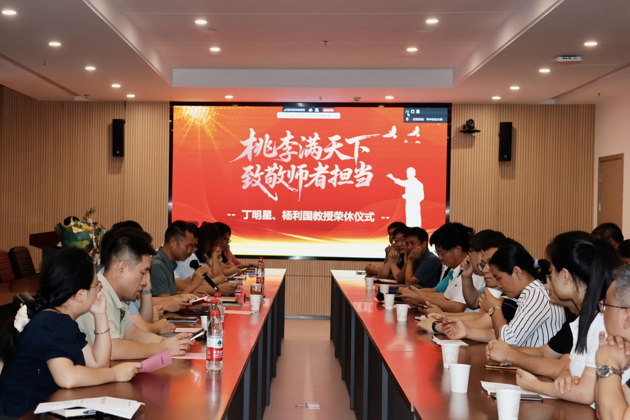 (通讯员:任靖 汪楚琪 )9月11日下午,学院临床兽医学系丁明星教授、动物繁殖与特种经济动物学系杨利国教授荣休仪式在第四综合楼D207会议室隆重举行。学院领导、临床兽医学系与动物繁殖与特种经济动物学系教职工代表、丁明星教授和杨利国教授毕业学生代表、学系学生代表齐聚一堂,共同向两位教授数十年来的杰出贡献致以崇高的敬意。活动由学院党委书记刘兴斌老师主持。