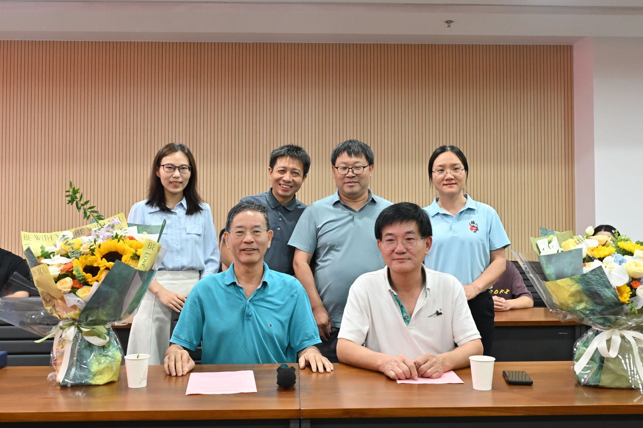 (学系教师代表向丁明星、杨利国赠送纪念品与鲜花)