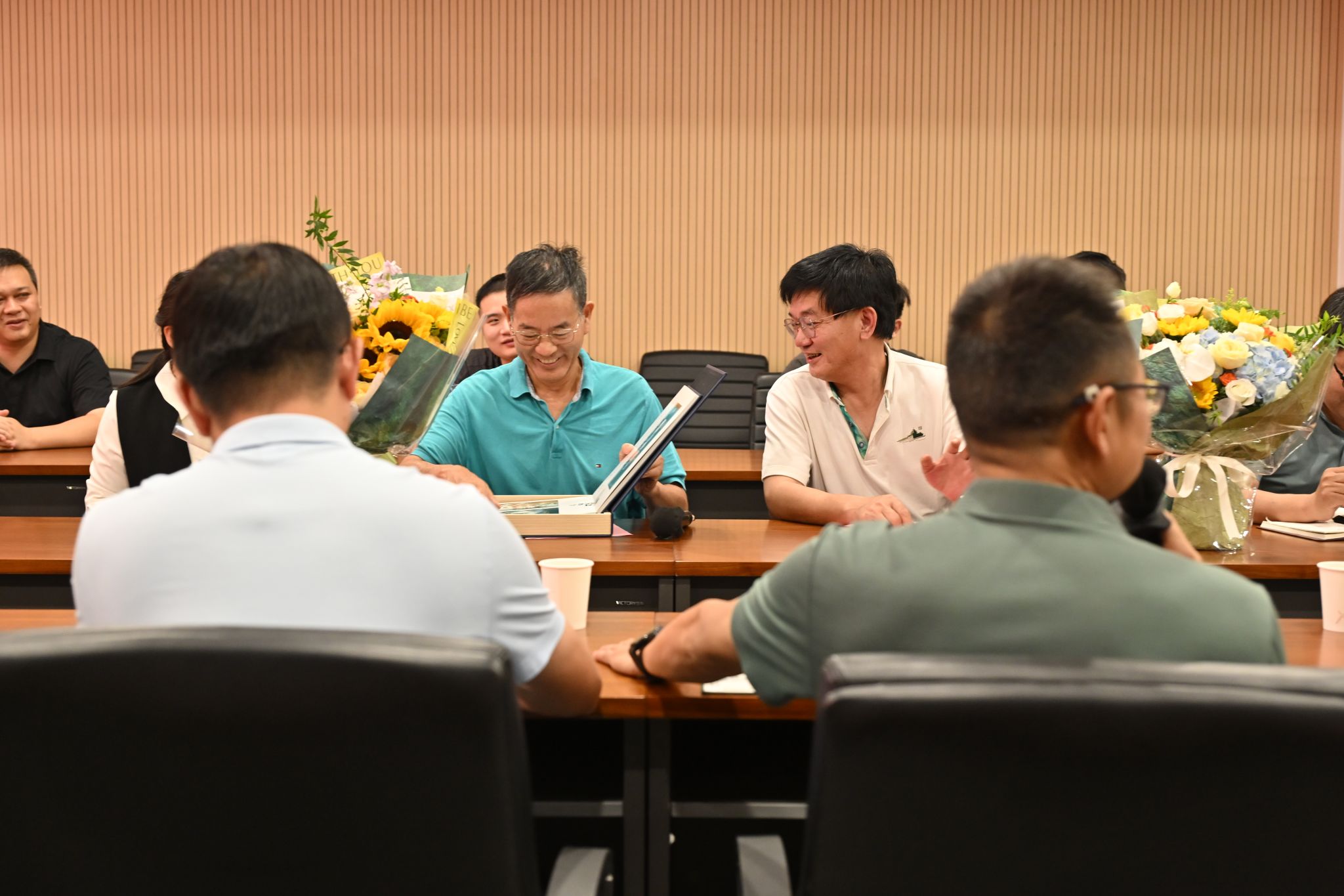 胡长敏教授与滑国华教授作为学系代表,向丁明星教授和杨利国教授赠送了纪念品。陈建国副教授与梁爱心副教授向两位教授敬献了鲜花。杰出毕业生代表亦向两位恩师呈上了纪念册,以表达对师恩的感激之情。