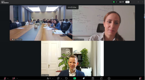 (黄玲利教授、Ákos Jerzsele教授与Zsuzsa Farkas学者围绕AI模型在耐药性预警系统中的应用展开了讨论)
