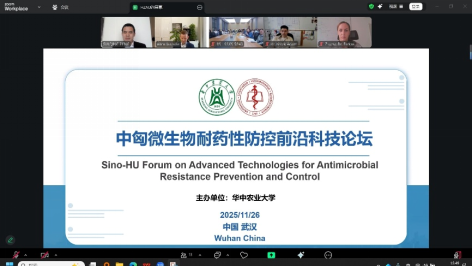(通讯员:徐向月、陈波)2025年11月26日,中匈微生物耐药性防控前沿科技论坛在华中农业大学兽药大楼106会议室召开。本次论坛以线上线下结合的模式,来自华中农业大学和布达佩斯兽医大学的多名教授及青年学者围绕“微生物耐药性防控”这一主题进行深入探讨,为我院师生了解国际前沿知识、拓展学术视野提供了重要平台。