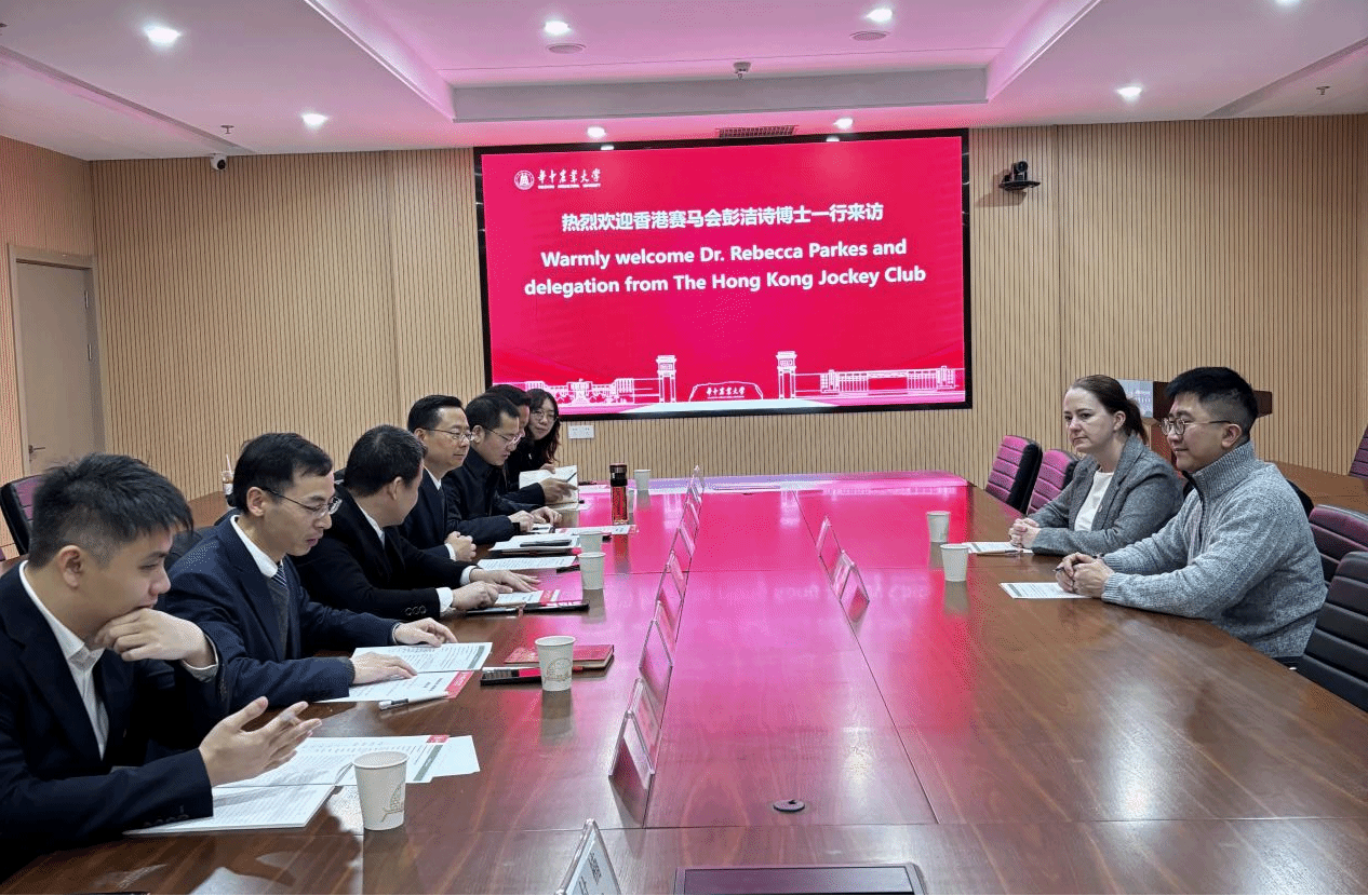 彭贵青院长介绍了我校和学院的发展历程、现状及前期合作基础,并就人才培养、科研合作提出未来合作构想。双方围绕如何深化合作、加强常态化交流等议题进行了深入探讨。彭洁诗博士表示,香港赛马会始终关注马产业发展,对科技赋能教育领域的快速进步深感鼓舞,期待与我院在马兽医教育及临床技术方面开展更深入、务实的合作。