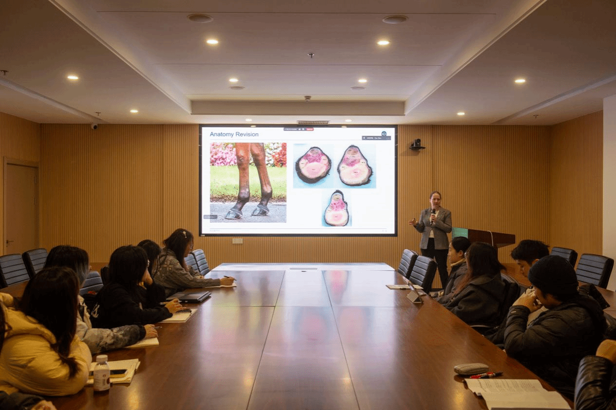 访问期间,彭洁诗博士还为我院师生带来了题为“马肌腱与韧带损伤诊疗”的专题讲座,系统讲解了相关病理机制、常见疾病和诊疗方案。讲座现场互动踊跃,气氛热烈,获得了师生们的积极反响。