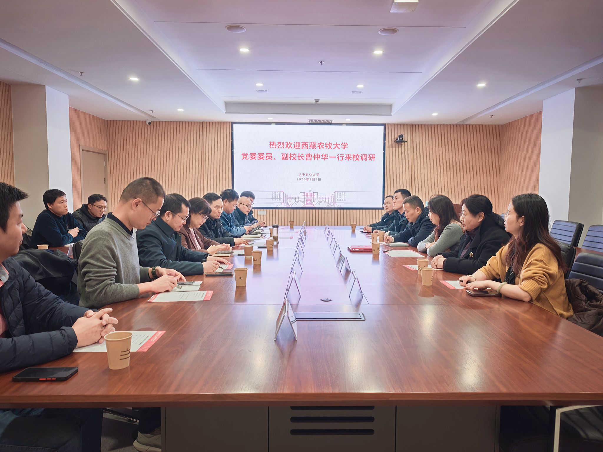 (通讯员:陈泊宁)2月5日上午,西藏农牧大学党委委员、副校长曹仲华一行来校交流,校党委副书记王从严、中国工程院院士金梅林等热情接待了西藏农牧大学一行。
