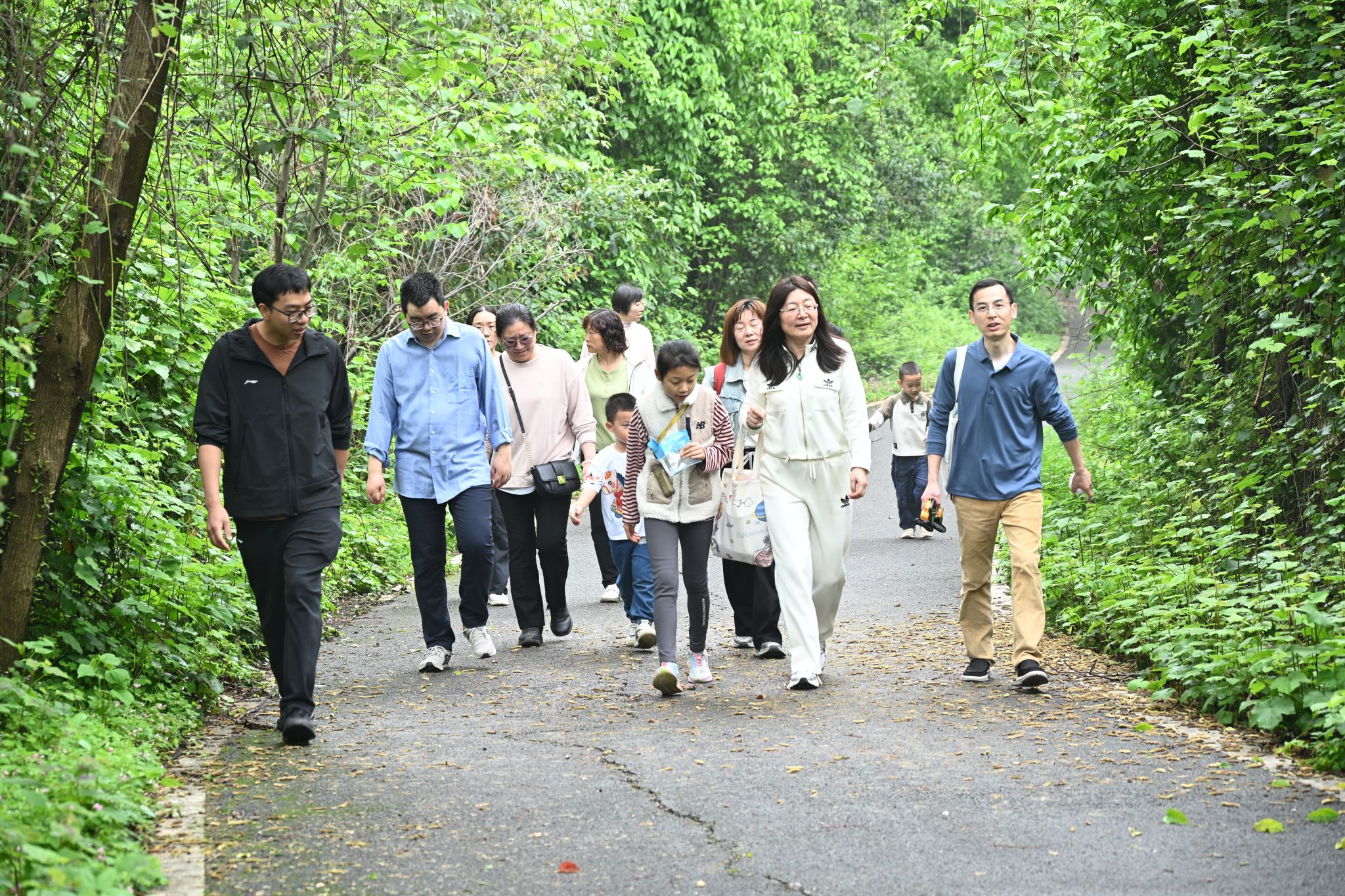 上午9时,参与健步走环节的老师与家人们在第四综合楼D座门口准时集合,大家合影留念后,迈着轻快的步伐,一同向着狮子山方向出发。与此同时,学院后勤工作人员提前抵达二十四节气柱活动场地,有条不紊地开展场地布置、物资整理、安全标语安放等各项筹备工作,为踏青活动的有序开展筑牢保障。健步走路上,春风和煦,凉意宜人,老师们漫步其间,一边欣赏沿途初春美景,一边畅谈工作生活、追忆往昔点滴;随行的孩子们嬉笑追逐、奔跑玩耍,清脆的欢声笑语回荡在林间路旁,处处洋溢着轻松愉悦的氛围。