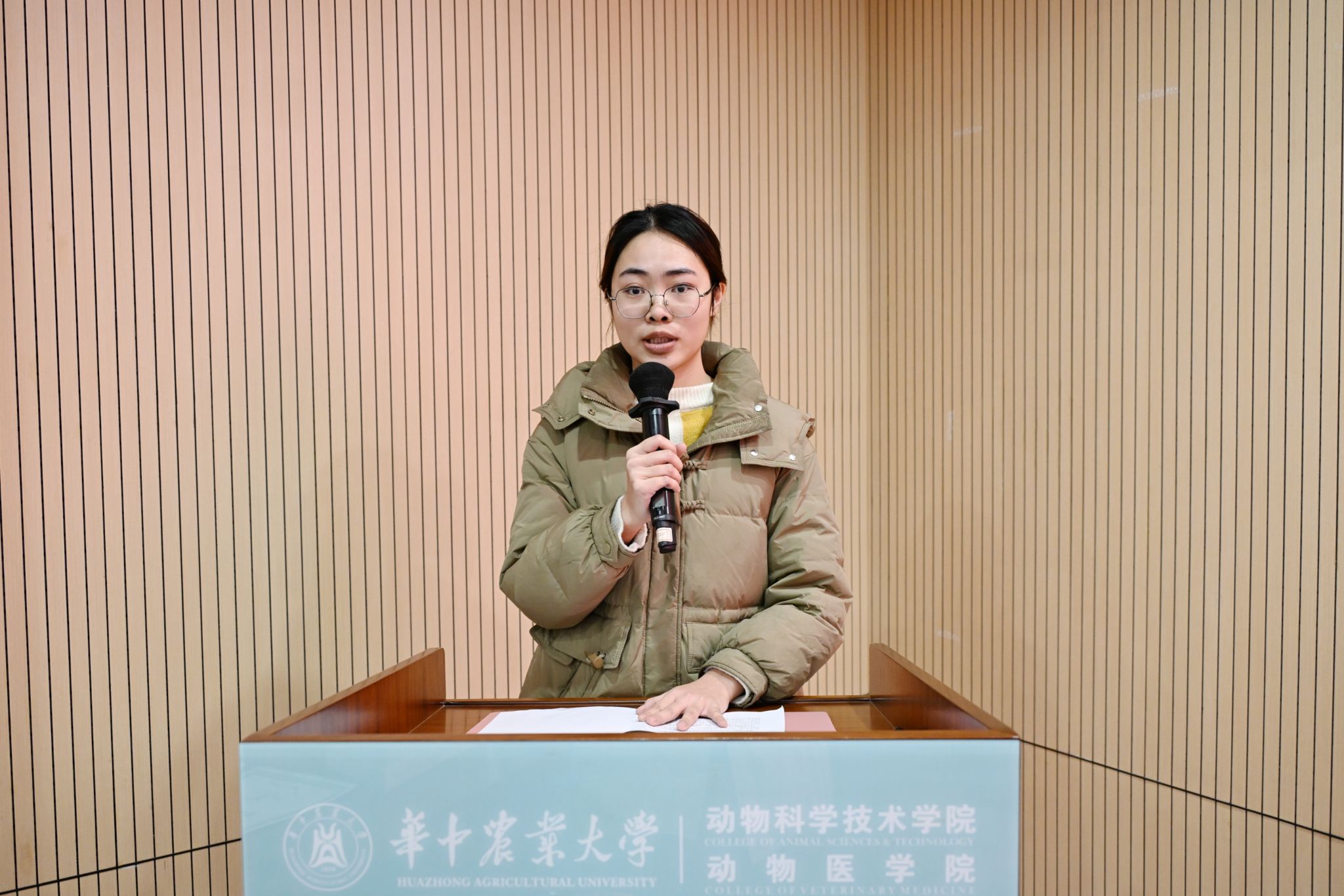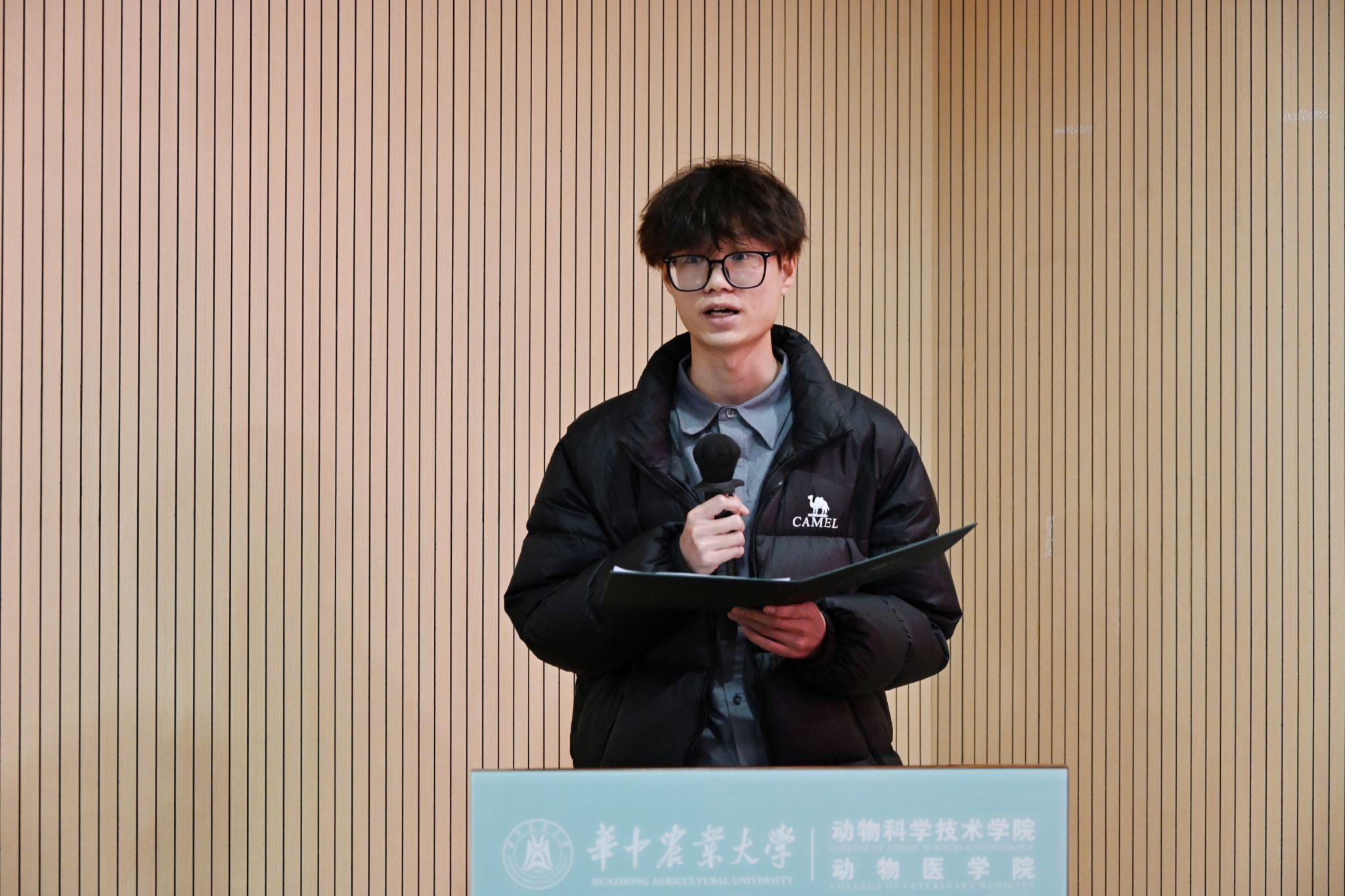 随后,第四期青马班学员代表程昕逸上台发言。她回顾了在青马班一年的学习与实践经历,衷心感谢学院搭建的优质平台与老师们的悉心指导,高度赞扬了学员们在志愿服务、理论学习等活动中展现的责任与担当。同时,她向第五期青马班学员送上诚挚祝福,期许新一届学员能丰富活动内涵、强化宣传力度,以更高标准展现动科动医学子的精神风貌。