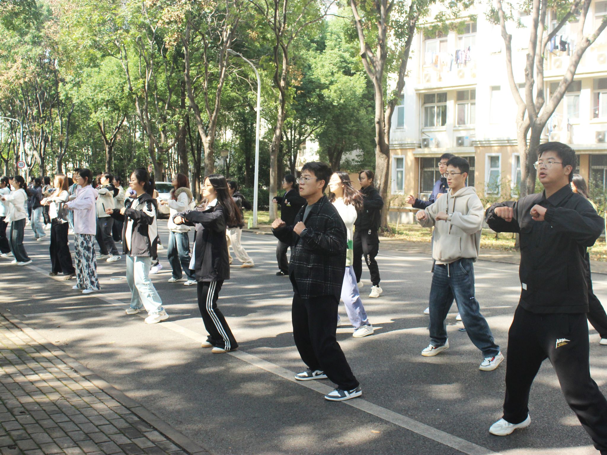 21日及22日早,体操汇演方阵参与运动会开幕式彩排。伴随音乐奏响,同学们完成跨立、抬手、摆臂、跳动、下蹲、立正等动作,预示着本次体操训练的结束,也为即将到来的正式表演做好充分准备。“巡操员都宽严相济,认真指正大家的错误。本次体操训练,不仅让我得到锻炼,更让我真切感受到学院的运动风貌。作为新生,通过参与此类校园活动,我更快融入了动科动医学院这一大家庭。”动医2506周佳优分享道。